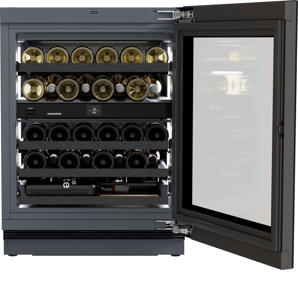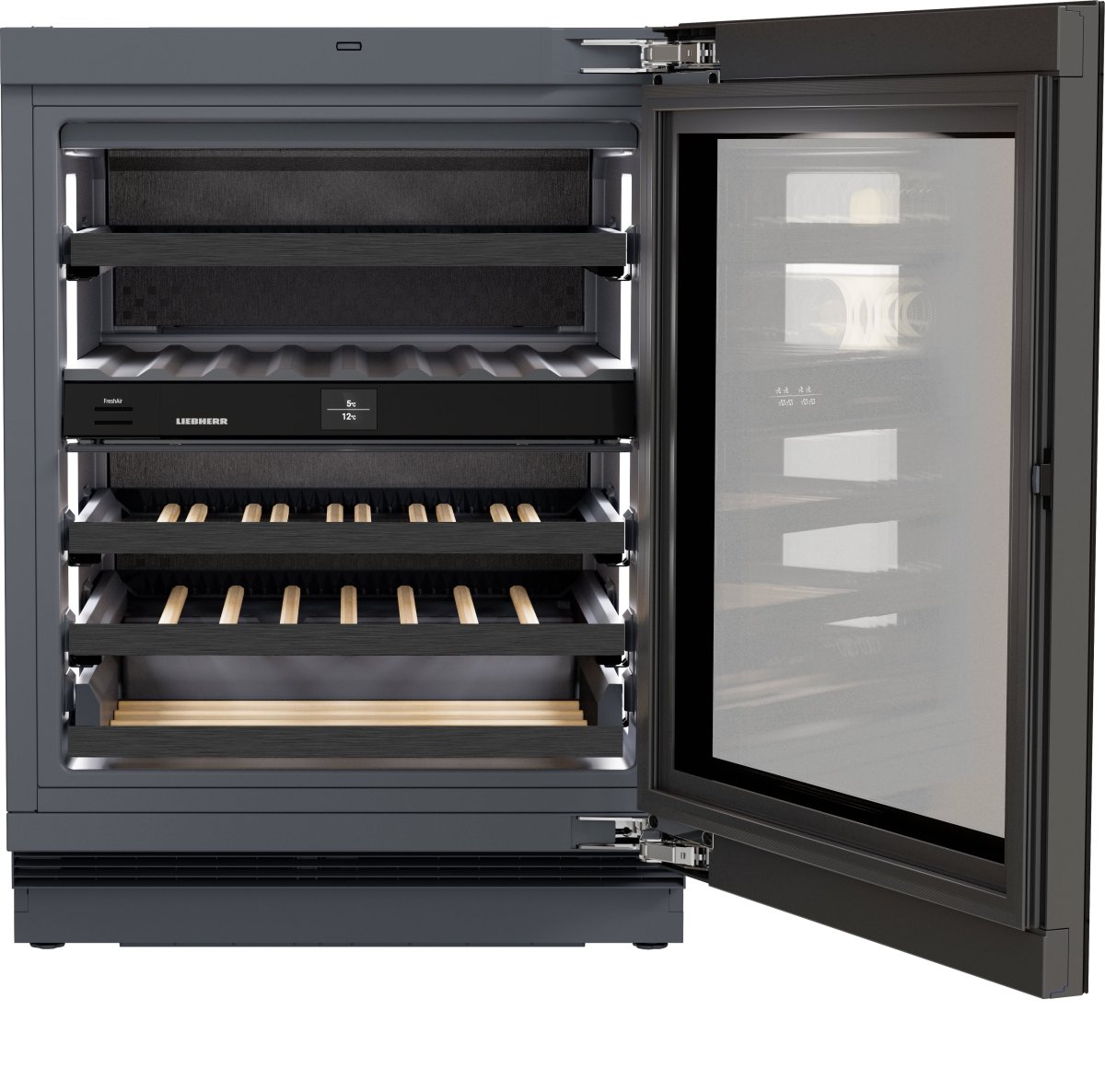 Свет – один из важнейших элементов дизайна, которым часто пренебрегают. Если использовать его с умом, свет может легко создать нужную атмосферу – как в наших приборах со стеклянной дверцей. Две вертикальные светодиодные колонны подсвечивают бутылки с вином как произведения искусства. Можно включить постоянное освещение или подсвечивать бутылки, когда открывается дверца. Кроме того, можно настроить яркость света.