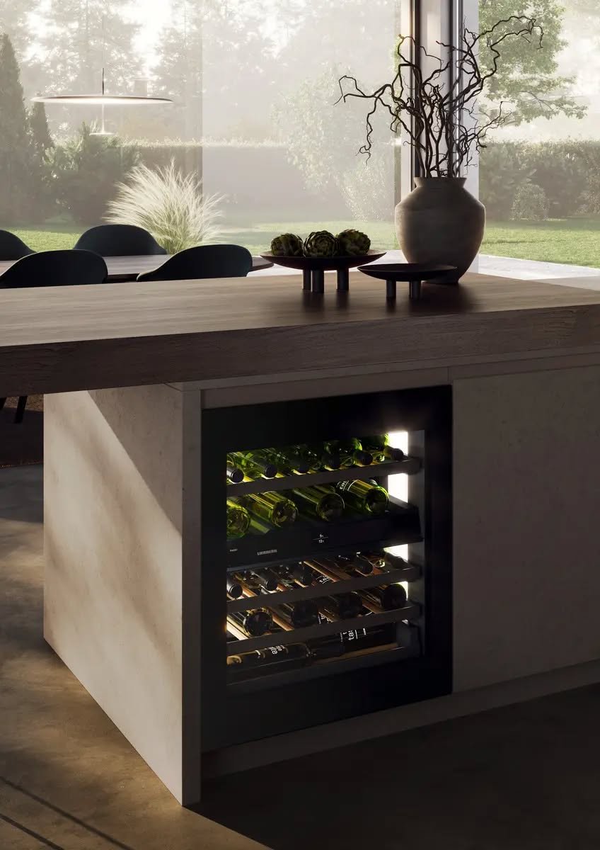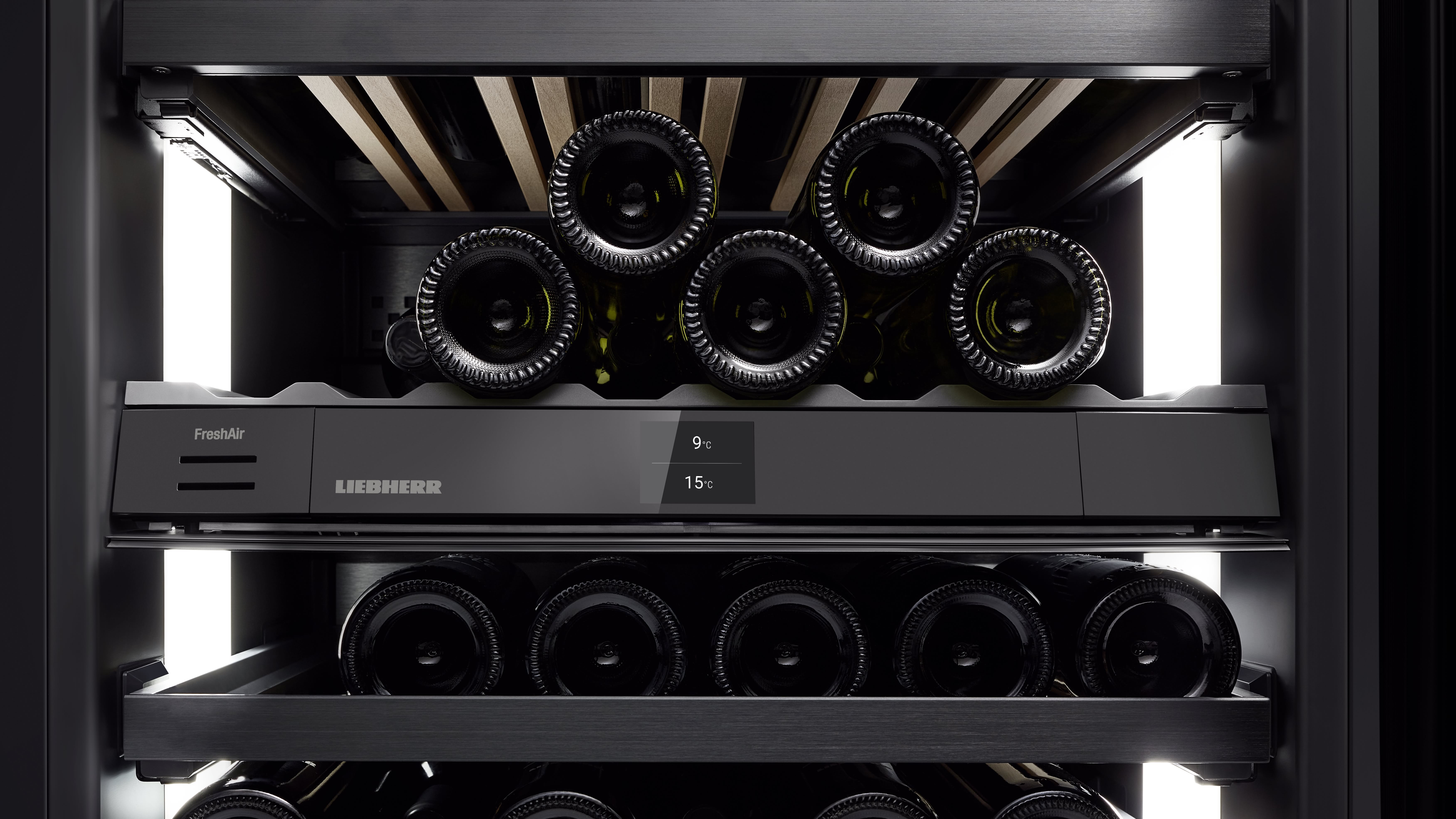 Свет – один из важнейших элементов дизайна, которым часто пренебрегают. Если использовать его с умом, свет может легко создать нужную атмосферу – как в наших приборах со стеклянной дверцей. Две вертикальные светодиодные колонны подсвечивают бутылки с вином как произведения искусства. Можно включить постоянное освещение или подсвечивать бутылки, когда открывается дверца. Кроме того, можно настроить яркость света.