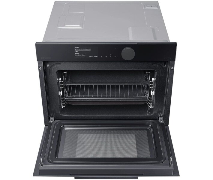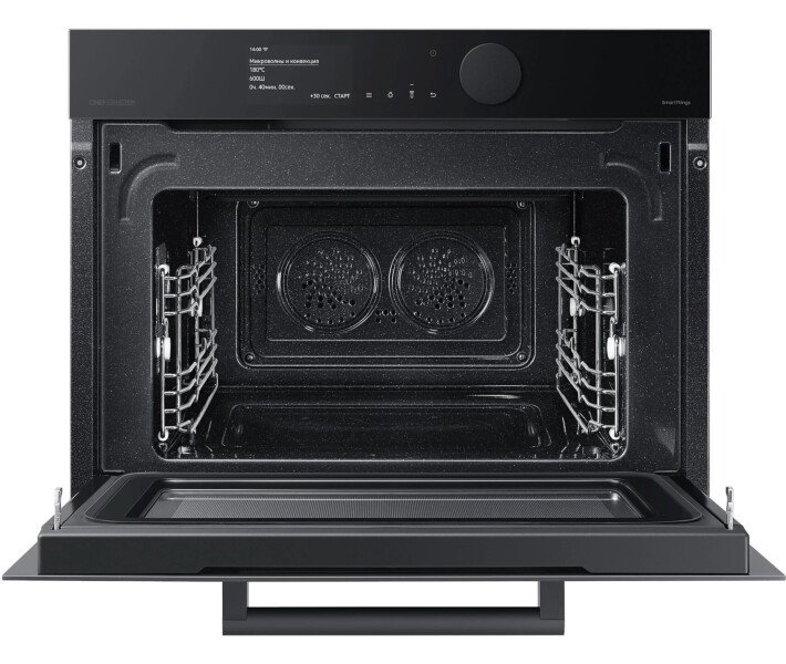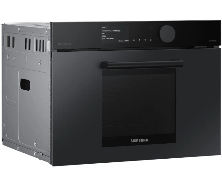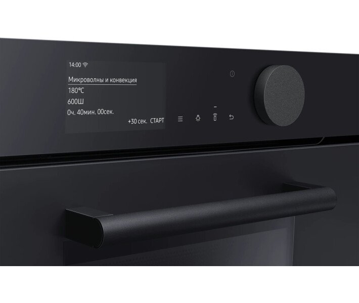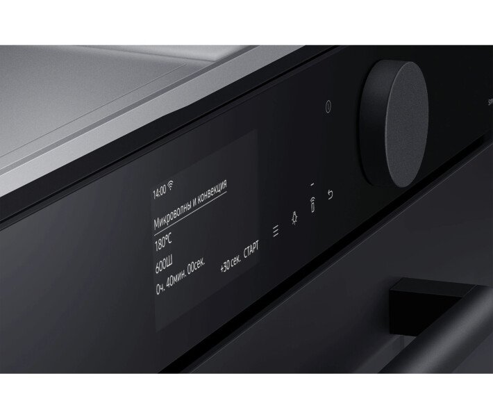 Создание гармоничного дизайна вашей кухни Infinite line™ Создайте кухню своей мечты. Она более функциональна и красива, чем предыдущая, и в ней приятнее находиться. Техника Samsung Infinite line™ отличается изысканным вертикальным дизайном с бесшовными плоскими поверхностями, которые делают ее привлекательной с виду. А целый ряд передовых технологий обеспечивает динамичную и гибкую работу. Элегантное и гармоничное окно из матового стекла Матовое стекло Добавить вашей кухне роскошный вид поможет окно из матового стекла, к которому очень приятно прикасаться. Его антибликовая технология отличается матовой текстурой, поэтому гармонично сочетается с современной кухонной техникой и мебелью. Кроме этого, оно будет всегда выглядеть великолепно благодаря покрытию, на котором не остается отпечатков пальцев. Больше способов идеально приготовить больше продуктов Функция Steam Combi Оптимизируйте вкус и текстуру блюд, что бы вы ни готовили. Духовой шкаф с поддержкой функции Steam Combi дарит вам гораздо больше возможностей. Ее можно использовать как обычную печь. Или применить функцию Full Steam для приготовления полезных блюд на пару. А функция Add Steam сделает вашу еду превосходно хрустящей и сочной. Приготовление здоровой пищи на пару Функция Full Steam Готовить здоровые и вкусные блюда на пару стало легче. Функция Full Steam подвергает воздействию пара такие продукты, как овощи или свежая рыба. Благодаря такому способу приготовления они отлично сохраняют свой природный вкус и витамины. Функция также позволяет удерживать влагу. Нежный внутри и зарумяненный снаружи Функция Add Steam Получите желаемое – блюда сочные и хрустящие. Функция Add Steam наполняет всю камеру паром, чтобы продукты сохраняли больше природной влажности. И ваши блюда всегда будут получаться сочными и мягкими внутри, и при этом прекрасно хрустящими и румяными снаружи. Быстрое и вкусное приготовление Microwave Combi Готовьте непревзойденно вкусно и быстро. Духовой шкаф с функцией Microwave Combi дает вам возможность готовить по-разному. Вы можете использовать его как обычную конвекционную духовку. Кроме того, она также выполняет функцию микроволновки для быстрого и тщательного приготовления пищи. Или вы можете использовать обе функции одновременно! Интуитивно простое управление 4,3-дюймовый TFT-дисплей Full Touch и большой циферблат Побалуйте себя эксклюзивными блюдами – теперь это легко. 4,3-дюймовый TFT-дисплей Full Touch с большим циферблатом отличается роскошным внешним видом, а его цветной интерфейс – сдержанным дизайном. Он наглядно показывает состояние внутри печи. К тому же вам будет удобно управлять рядом функций простым касанием или поворотом циферблата. Простое управление в любое время и в любом месте Подключение к Wi-Fi с помощью SmartThings Экономьте время и успевайте гораздо больше с помощью Wi-Fi. Просто следите за статусом работы печи и управляйте ею в любое время и в любом месте с помощью приложения. Вы можете предварительно разогреть или выключить, а также проверить и отрегулировать температуру и время приготовления. Руководство по приготовлению пищи также рекомендует оптимальный режим приготовления для каждого блюда и делится рецептами. Более эффективное использование энергии - снижение затрат Класс энергоэффективности А+ Сделайте свой дом более энергоэффективным и экономьте на счетах за электричество. Ду