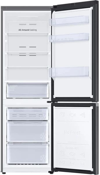 Гарантирует, что вся ваша еда должным образом охлаждена. Система всестороннего охлаждения равномерно охлаждает каждое отделение от угла к углу. Она постоянно проверяет температуру и обеспечивает циркуляцию холодного воздуха через оптимально расположенные вентиляционные отверстия. Более продолжительная свежесть продуктов без образования льда