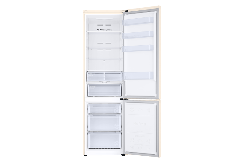 Гарантирует, что вся ваша еда надлежащим образом охлаждена. Система всестороннего охлаждения равномерно охлаждает каждое отделение от угла до угла. Она постоянно проверяет температуру и обеспечивает циркуляцию холодного воздуха через оптимально расположенные вентиляционные отверстия. Долговечная свежесть продуктов без образования льда Система No Frost с автоматическим размораживанием