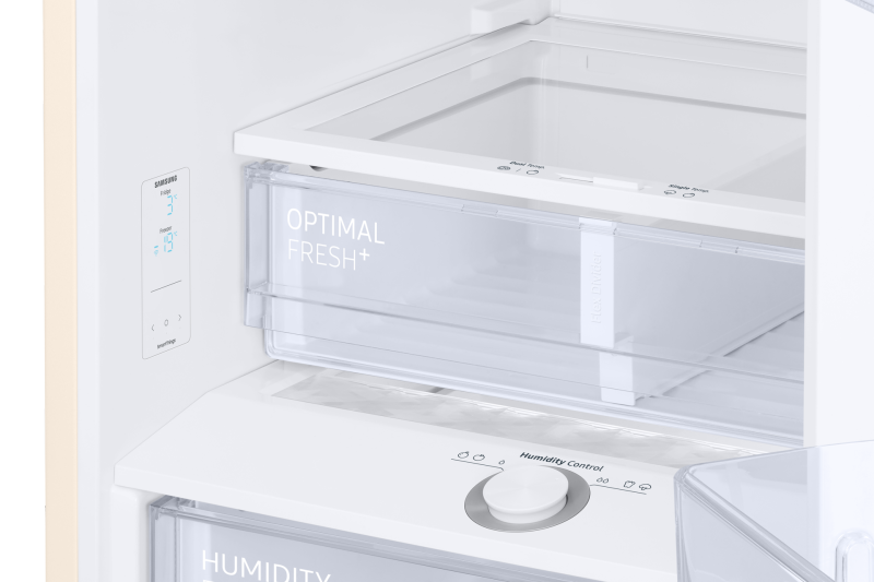 Optimal Fresh + — это отдельный отсек для хранения, который идеально подходит для хранения мяса и рыбы. Температура там ниже, чем в холодильнике, чтобы они оставались свежими и сохраняли свой вкус. Оптимальная влажность для длительной свежести Контроль влажности Humidity Fresh +
