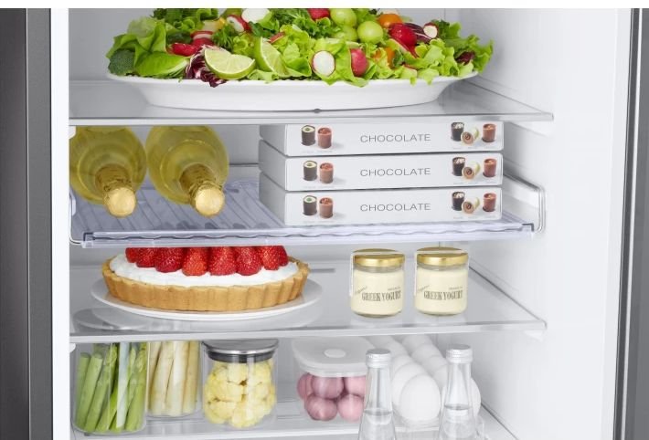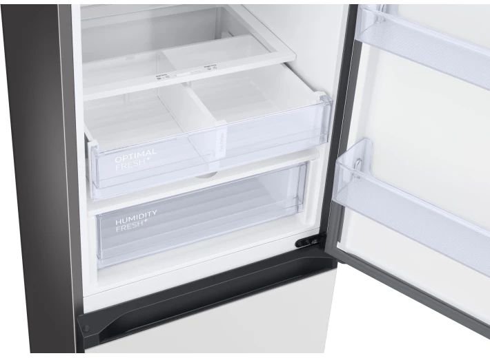 Больше пространства внутри Храните больше продуктов в большом холодильнике объемом 385 литров с глубиной 600 мм. Уникальная технология SpaceMax™ использует специальную высокоуретановую изоляцию, которая позволяет сделать стенки намного тоньше, не ухудшая при этом энергоэффективность. Таким образом, внутри становится больше пространства. Более продолжительная свежесть продуктов без образования льда Не тратьте время и энергию на размораживание холодильника. Технология No Frost улучшает циркуляцию воздуха для поддержания постоянной температуры, что предотвращает образование льда. Благодаря ей нужная температура достигается гораздо быстрее. И требует меньшей нагрузки от системы охлаждения. Идеальное хранение свежести мяса и рыбы Optimal Fresh+ представляет собой отдельный отсек для хранения, который идеально подходит для хранения мяса и рыбы. Температура там ниже, чем в холодильнике, чтобы продукты оставались свежими и сохраняли вкус. Оптимальная влажность для продолжительной свежести Сохраните оригинальную текстуру продуктов, вкус и запах в течение более длительного периода. Ящик с контролем влажности включается обычным поворотом ручки. Внутри создаются идеальные условия для хранения фруктов и овощей, поэтому остаются свежими и сочными как можно дольше. Быстрое охлаждение и замораживание при необходимости Наслаждайтесь быстрым охлаждением. Одним нажатием кнопки Power Cool интенсивно вдувает холодный воздух в холодильник, чтобы быстро охладить ваши продукты или любимые напитки. Power Freeze обеспечивает быструю подачу холодного воздуха в морозильную камеру. Открываются на 90° даже у стены Разместите холодильник в удобном для вас месте, несмотря на стены. Конструкция реверсивной дверцы позволяет открывать ее на 90°, не задевая краем ни одну стену. Таким образом, вы можете разместить холодильник в самом удобном месте, а дверца будет полностью открываться до уровня боковой стены. Чистота, надежность и защита Очистить заднюю стенку вашего холодильника стало еще проще. Защитный короб защищает кабели и легко очищается, поэтому можно не переживать за комплектующие холодильника. Тратьте меньше электроэнергии, храните больше продуктов Уменьшайте потребление электроэнергии до 10% с помощью режима AI Energy. Если ваш средний счет за электроэнергию превышает установленную вами норму, это поможет сэкономить. Режим AI Energy оптимизирует скорость компрессора и цикл размораживания в зависимости от использования и среды.