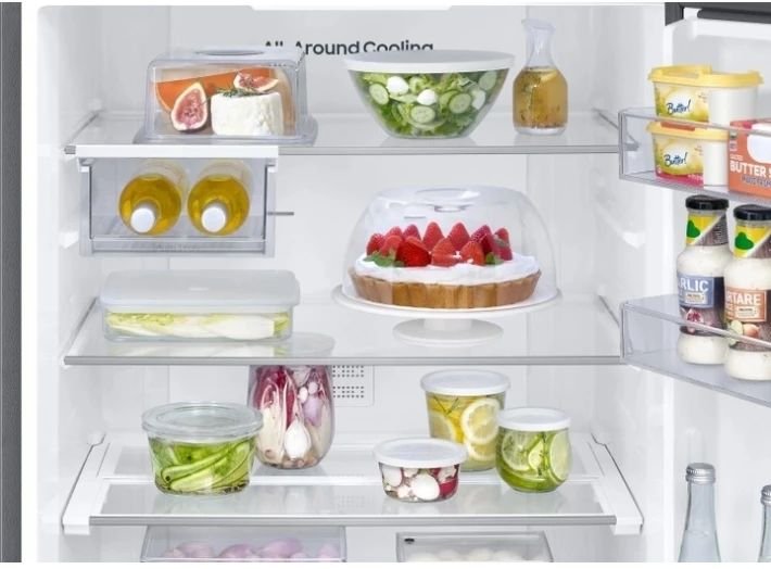 Гарантирует, что вся ваша еда должным образом охлаждена. Система всестороннего охлаждения равномерно охлаждает каждое отделение от угла к углу. Она постоянно проверяет температуру и обеспечивает циркуляцию холодного воздуха через оптимально расположенные вентиляционные отверстия. Благодаря этому, продукты сохраняются при оптимальной температуре и дольше остаются свежими. SmartThings Food