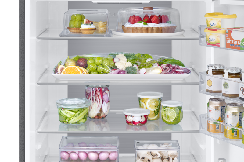 Гарантирует, что вся ваша еда должным образом охлаждена. Система всестороннего охлаждения равномерно охлаждает каждое отделение от угла до угла. Она постоянно проверяет температуру и обеспечивает циркуляцию холодного воздуха через оптимально расположенные вентиляционные отверстия. Благодаря этому продукты сохраняются при оптимальной температуре и дольше остаются свежими. SmartThings Energy