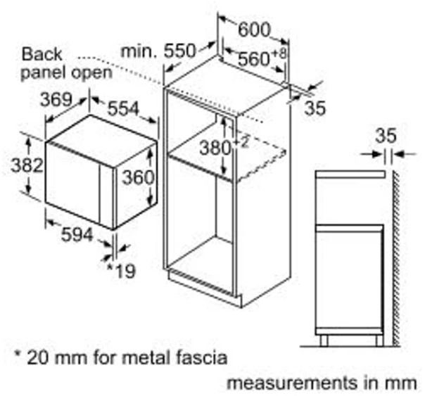 - Размеры ниши (ВxШxГ): 380 мм – 382 мм x 560 мм – 568 мм x 550 мм