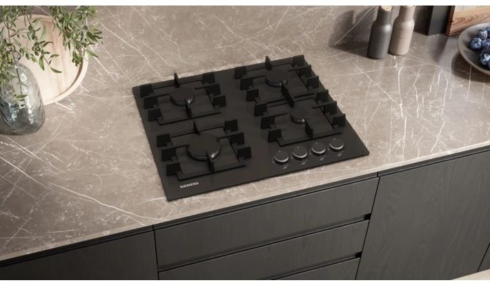 iQ300 Газовая варочная поверхность Siemens EN6B6NP40R шириной 60 см с фронтальным расположением переключателей: удобное управление выбранными конфорками с передней панели.