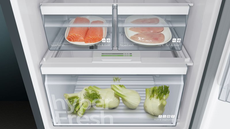 Непревзойденное качество. Холодильник с морозильной камерой Siemens обеспечит быстрое охлаждение и замораживание ваших продуктов. А премиальные материалы позволят ему служить долго и качественно. Идеальное хранение овощей и фруктов. Температура в зоне свежести HyperFresh 0 ° С ниже, чем в холодильной камере, что является оптимальным условием для хранения рыбы и мяса. LED освещение. LED-лампы ярко освещают продукты внутри холодильника, обеспечивая при этом низкое потребление электроэнергии на протяжении всего периода эксплуатации холодильника. Забудьте о разморозке навсегда. Благодаря технологии noFrost лед внутри морозильной камеры не намерзает, что избавляет вас от процедуры размораживания. Система MultiAirflow. Она равномерно распределяет температуру по всему холодильнику, обеспечивая одинаковое охлаждение продуктов на всех полках. Заморозьте продукты в миг. Предотвратить размораживание старых продуктов во время загрузки новых поможет функция superFreezing. Просто включите её за сутки до загрузки свежих продуктов. За это время температура в морозильной камере опустится до -30 градусов и тем самым предотвратит размораживание. Безопасное стекло. Легкие и крепкие: полки из закаленного стекла safetyGlass непревзойденно крепкие и легко моются. А специальные бортики гарантируют, что пролившиеся жидкости не будут протекать в другие отделения холодильника. Непревзойденная энергоэффективность. Класс энергоэффективности прибора А++ обеспечивает высокую производительность и низкое потребление энергии. Постоянная температура: функция superCooling. Вы можете использовать функцию быстрого охлаждения superCooling для быстрого снижения температуры в холодильном отделении до +2 ° C. Это предотвращает нагревание уже охлажденных продуктов. Система varioZone. Внутреннее пространство морозильных камер холодильников Siemens может подстраиваться под ваши нужды. Вы можете вынуть все контейнеры и полки, чтобы освободить место для очень больших продуктов - например, для целого лосося. Независимые контуры охлаждения. В холодильниках с двумя независимыми контурами охлаждения управление морозильной и холодильной камерами осуществляется отдельно. Поэтому при размораживании морозильной камеры вам не нужно будет выключать весь холодильник. И пока морозильная камера будет размораживаться, холодильная будет продолжать работать, и наоборот. Вместительный и элегантный. Полезный объем холодильной камеры – 279 л, что позволяет разместить множество продуктов. А морозильная камера объемом 87 л за 24 часа может заморозить до 14 кг продуктов.