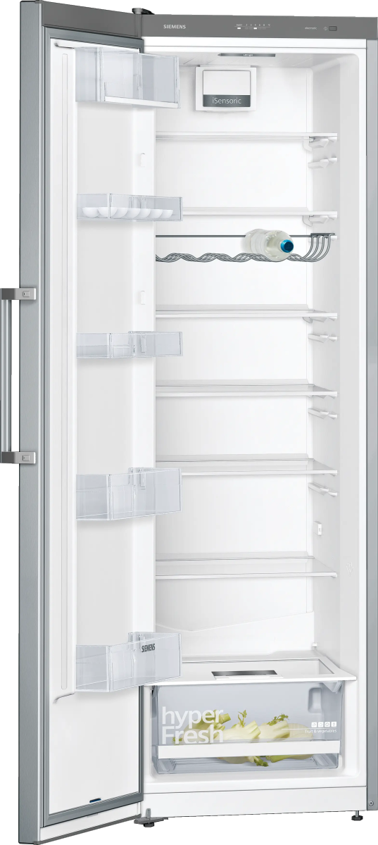 Холодильник Siemens оснащен полками, изготовленными из сверхпрочного закаленного стекла, за которым легко ухаживать. Если даже что-то прольется в холодильном отделении, жидкость не будет протекать в другие отделения холодильника, а оставаться в одном месте. А если полка разобьётся, то стекло не рассыпается на острые осколки, поэтому вы не сможете пораниться стеклом.