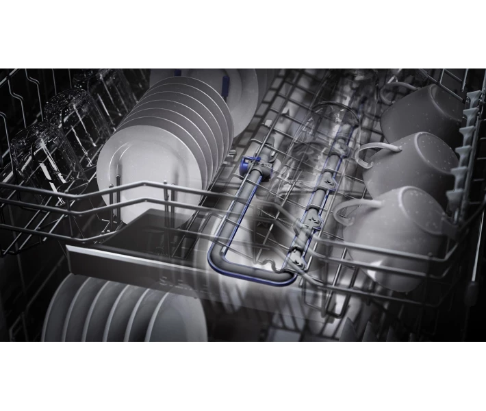 Функция intensiveZone позволяет удалить стойкие загрязнения в любой программе мытья за счет увеличения давления подачи воды в нижнем коробе. При этом интенсивность очистки в верхнем коробе остается неизменной, что позволяет мыть сковородки и бокалы одновременно.