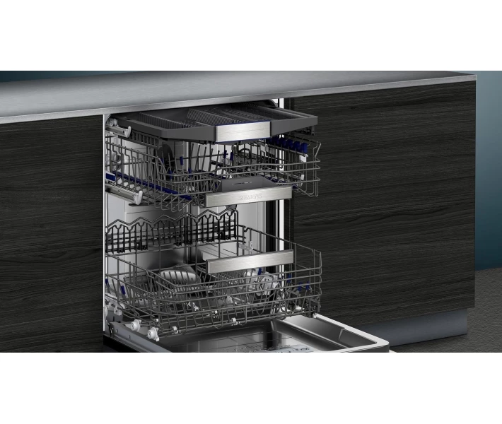 Модель оборудована системой openAssist. Пользователю нужно легко прикоснуться к переднему фронту дверцы машины, чтобы ее открыть.Система оптимально подходит для монтажа в сплошных кухонных мебельных фасадах без ручек. Посудомоечная машина Siemens SN87TX02CE имеет три короба, включая ящик для столовых приборов и мелких предметов. Верхний короб регулируется по высоте. Девайс оснащен системой защиты от протекания aquaStop и изготовлен из нержавеющей стали, что гарантирует долговечность.