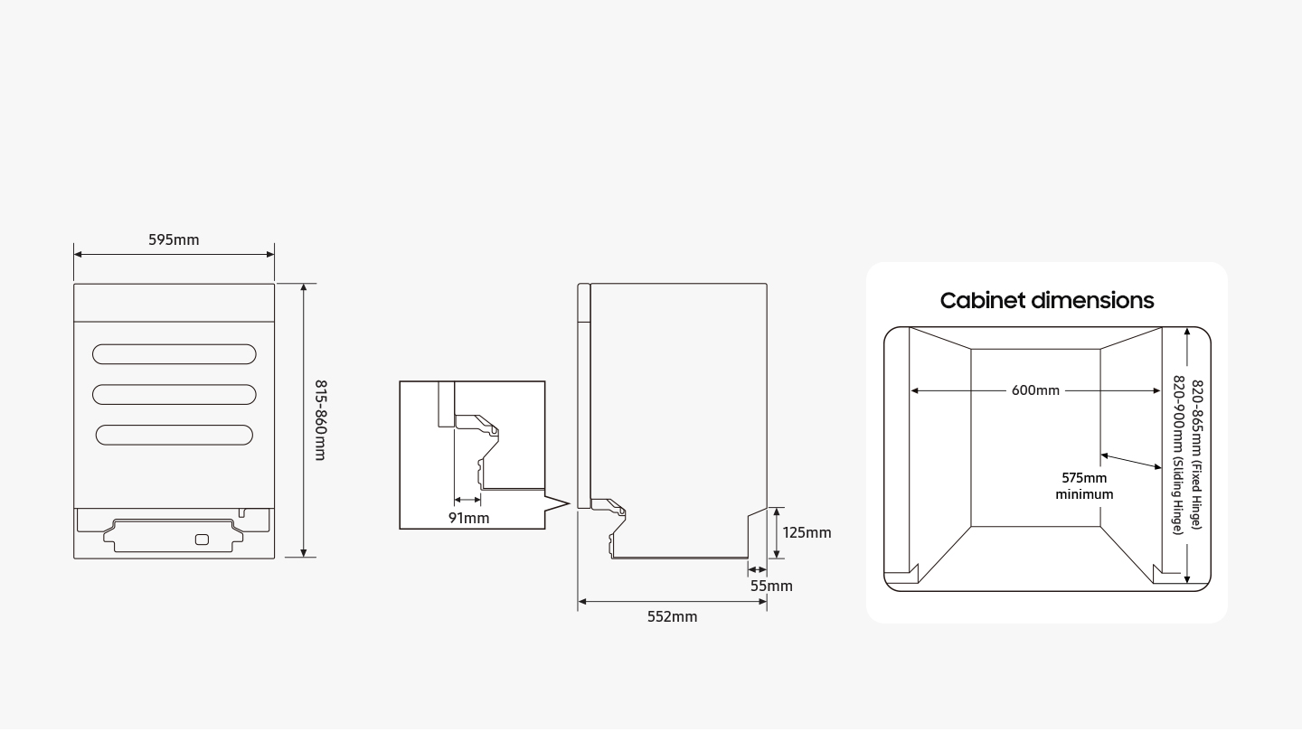 * Диапазон веса панели на заказ: 4,5-12 кг (саморегулировка). **Модель для встраивания в кухню: DW60DG7**I00**.