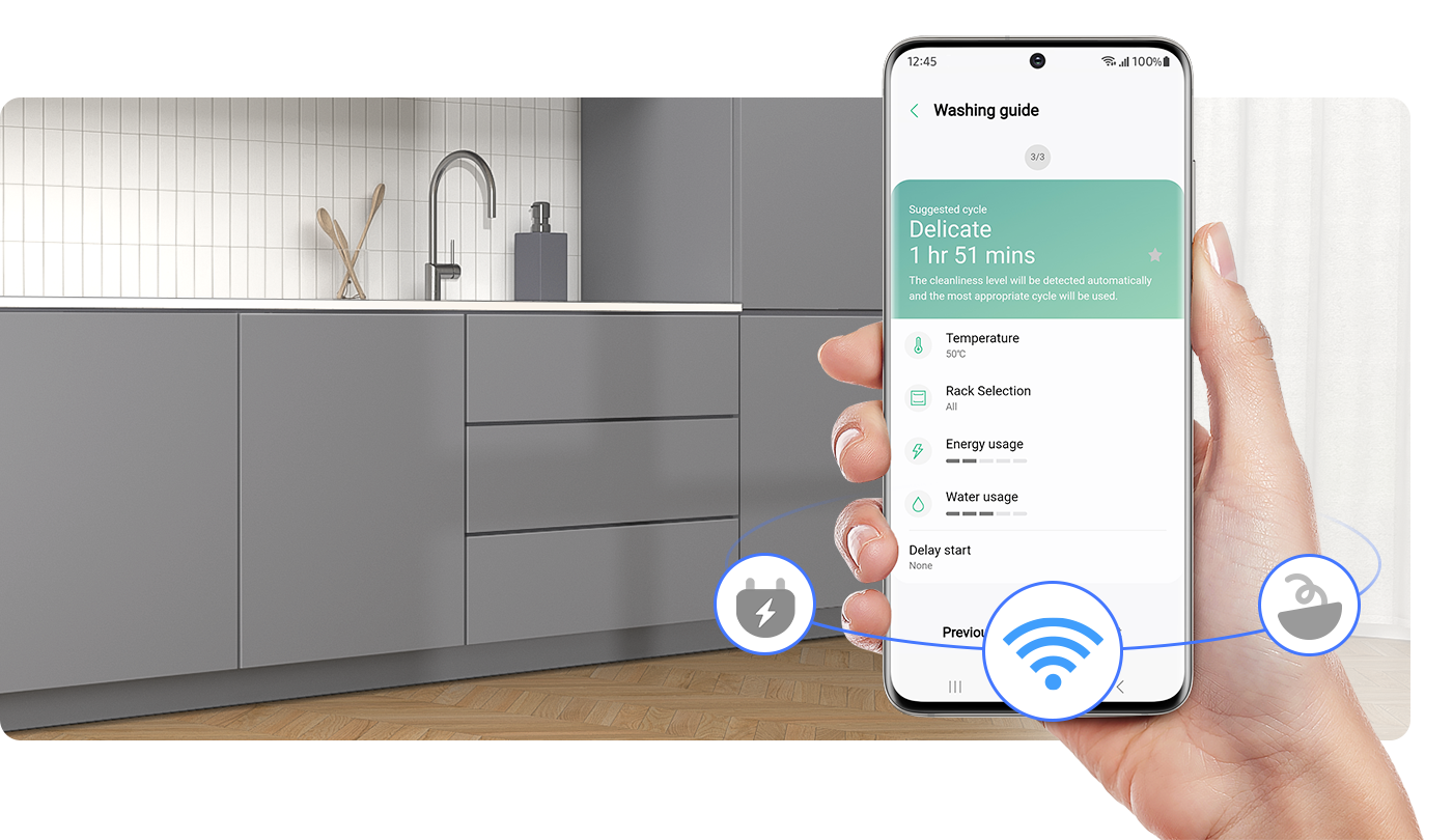 SmartThings* позволяет дистанционно управлять посудомоечной