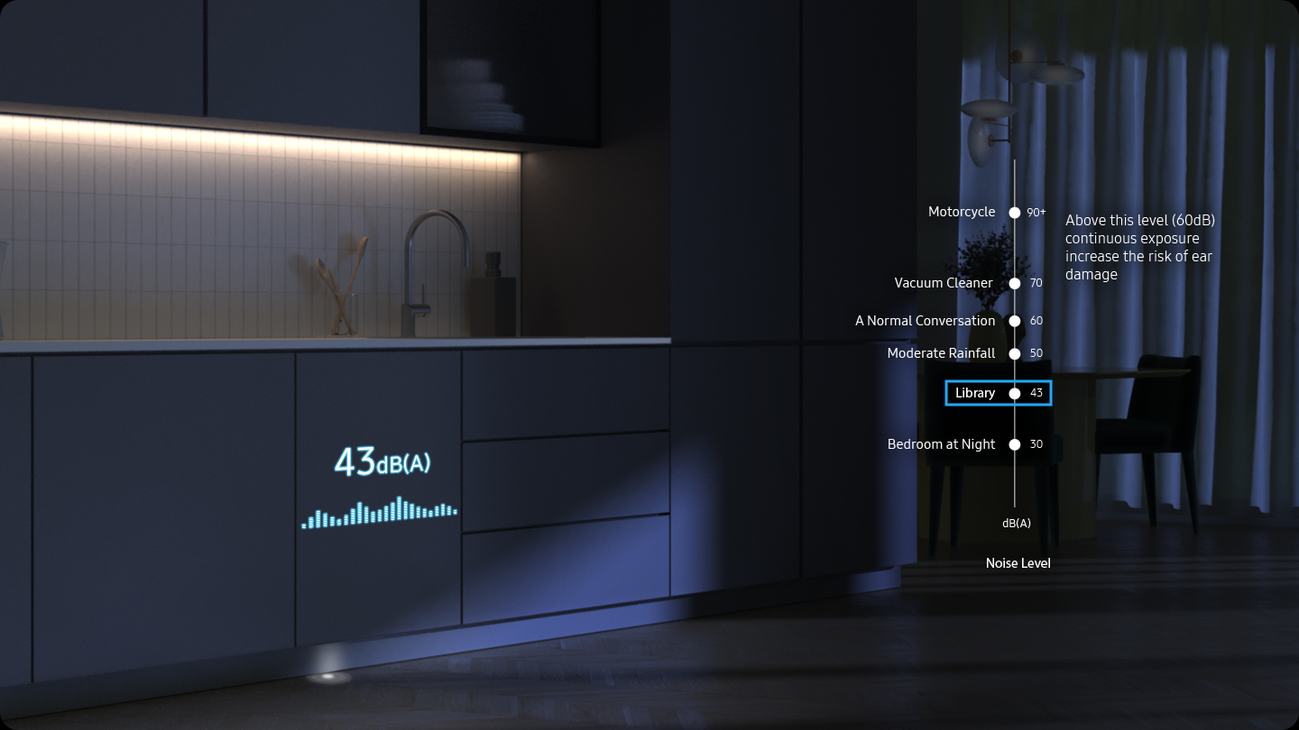 на 2 дБ меньше шума, чем программа «ЭКО»*. Уровень шума работающей