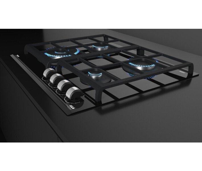 Что не отнять у техники данного производителя, так это отличной эргономики. Независимо от дизайна, варочные поверхности управляются интуитивно и очень четко. Teka GZC 64320 BK имеет четыре поворотных регулятора пламени, которые сгруппированы таким образом, чтобы освободить больше места для большой конфорки. Регуляторы имеют оригинальную форму, чтобы можно было регулировать пламя даже влажными руками. Есть четкие отсечки промежуточных положений для удобной регулировки, а также ограничитель минимального огня. Система защиты от утечки газа обеспечивает высокий уровень безопасности.
