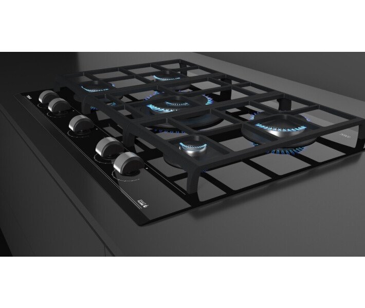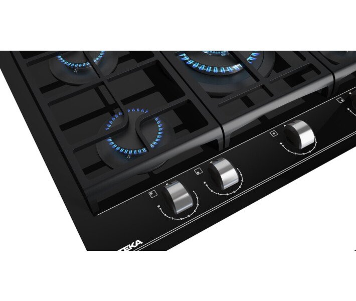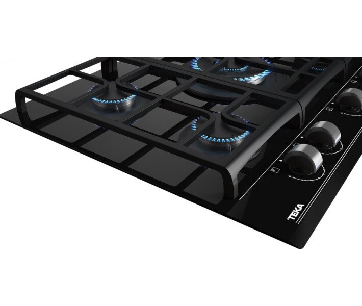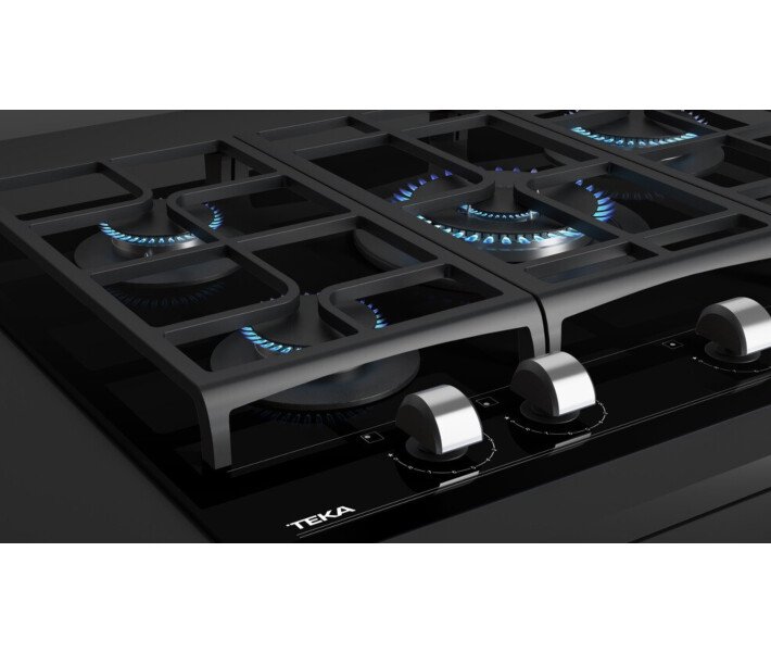 Поверхность Teka GZC 75330 имеет 5 конфорок разной мощности и размера. Центром внимания стала огромная 4-киловатная турбоконфорка с двумя рядами пламени. Она обеспечивает быстрый и равномерный нагрев посуды большого диаметра. Идеальный вариант для вока или гриля, чтобы обжаривание происходило быстро и эффективно. Остальные конфорки расположены таким образом, чтобы не мешать друг другу при использовании посуды разного типа. Устойчивость обеспечивается чугунными решетками. Решетка разделена на 3 секции, каждую из которых можно снять отдельно и помыть. Это удобно для поддержания чистоты и порядка на кухне.
