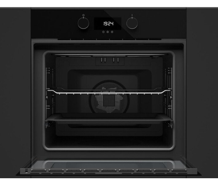 Духовка Teka HLB 8400 P имеет систему плавного закрытия двери SoftClose. Теперь не будет разрежающего стука при закрывании, а шарниры прослужат дольше. Режим ТУРБО отключается автоматически при открывании дверцы. Это делает работу с духовкой безопасной. Деко и решетка имеют защиту от опрокидывания. А телескопические направляющие на одном основном уровне обеспечат комфорт при работе. Дверь имеет стеклопакет из 4 стекол, чтобы фасад оставался полностью холодным. DualClean двойная система очистки в одной и той же печи