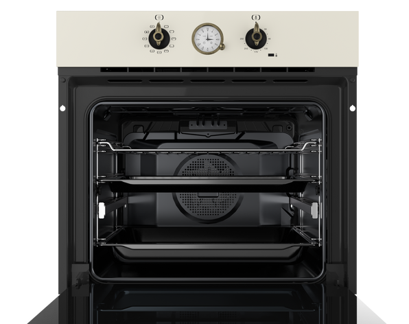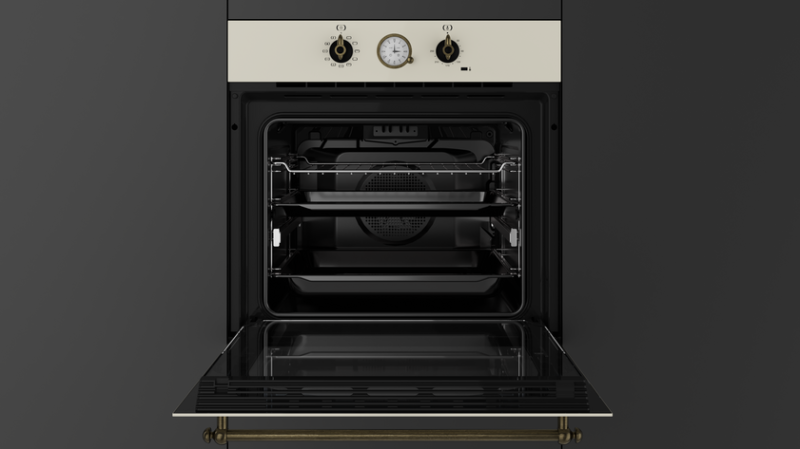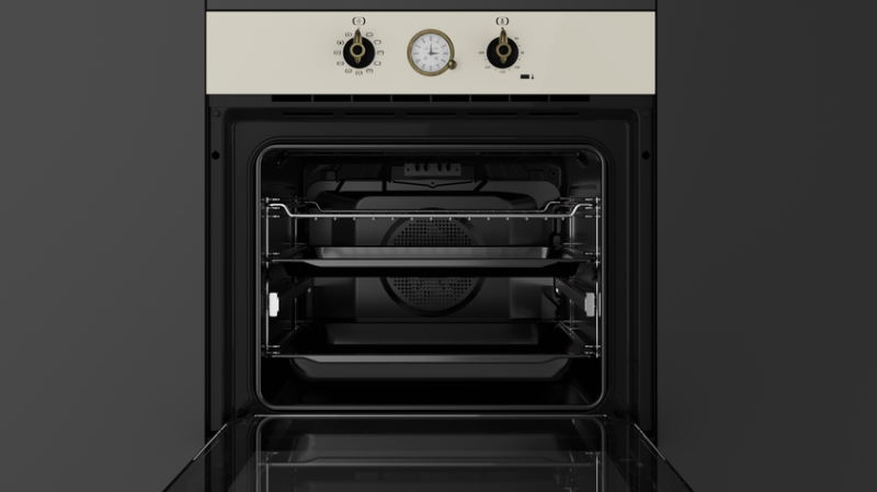 Внутри за старинным фасадом скрывается вполне современный духовой шкаф. Teka HRB 6300 VN (111010012) представляет собой классическое 9-режимное решение, которое встречается в других моделях производителя. Большой выбор режимов работы обеспечивает достаточную степень свободы. Уникальный элемент, который несет не только декоративную функцию, - это аналоговый таймер со стрелками. Он обеспечивает не только сигнализацию, но и отключение нагрева. А в использовании такое устройство очень даже удобное! SurroundTemp