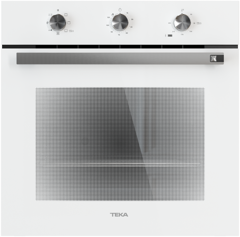 Духовой шкаф Teka HSB 6150 WH имеет 6 режимов приготовления. Выбор программы осуществляется поворотным переключателем. Вообще панель управления отличается отсутствием экрана. Сначала это покажется непривычным. Но на самом деле с помощью ручек достаточно удобно выбирать и режим, и температуру, и время работы программы. Радует наличие дополнительного режима очистки Hydroclean ECO, который позволяет быстро убрать внутри шкафа и удалить даже стойкие загрязнения.