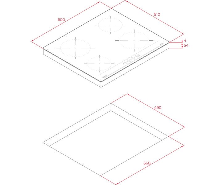 - 2 индукционные зоны Ø180 мм: 1.7 - 2 кВт