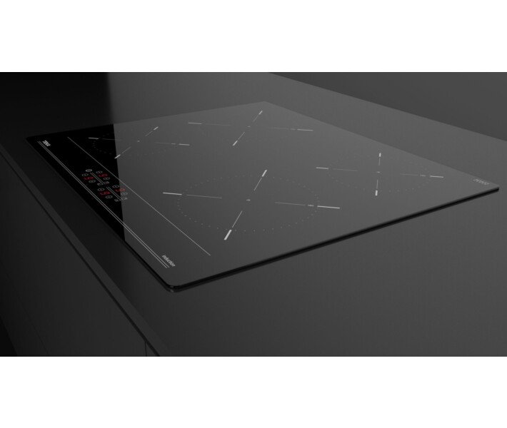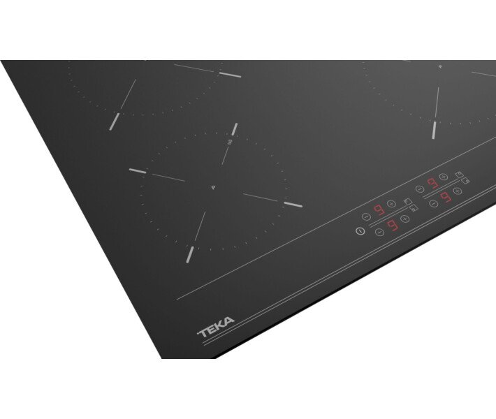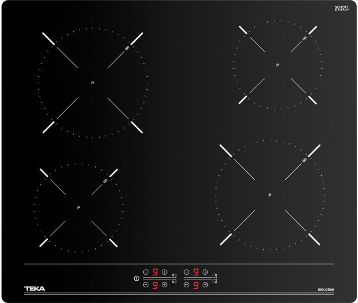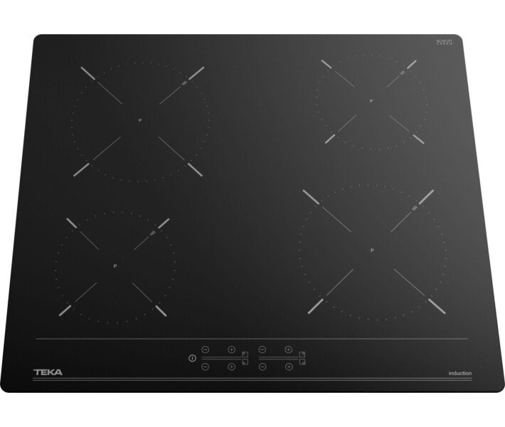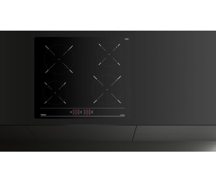 Если уж у вас электрическая поверхность, то есть возможность реализовать любой тип управления. В модели Teka IBC 64000 BK (112520007) используются сенсорные кнопки в сочетании с отдельными цифровыми индикаторами на каждую зону. Регулировка осуществляется в пределах 9 уровней для каждой зоны. Конфорки двух типов и диаметров обозначены соответствующими символами на поверхности. Полезные опции