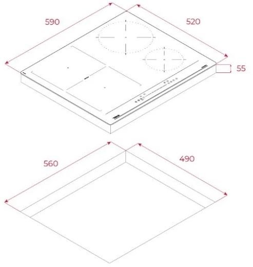 - Левая передняя зона приготовления- Распознавание кастрюли (мм): 180 x 180 ,