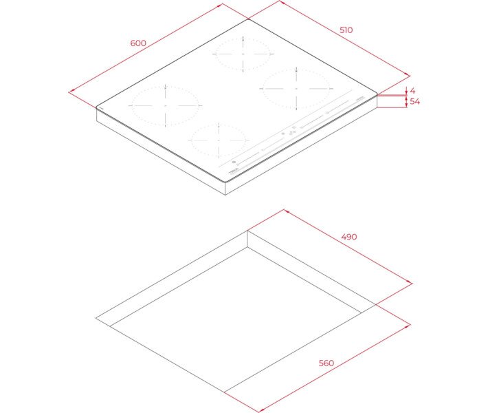 - 2 индукционные зоны Ø185 мм: 1.8 - 2.1 кВт