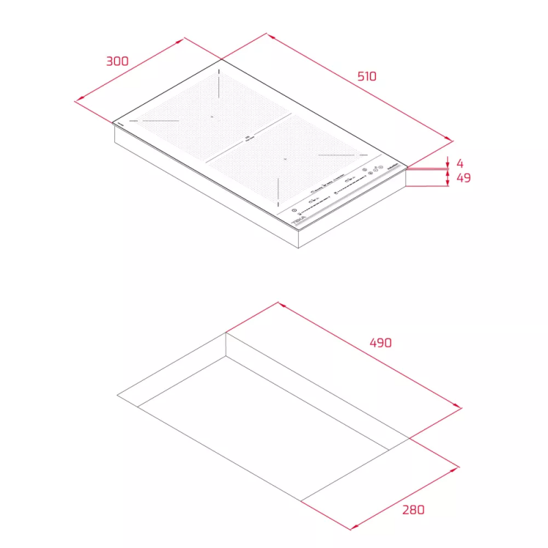 - 2 Flex зоны 235 X 188,5 мм (1,75/2,2 кВт) ,