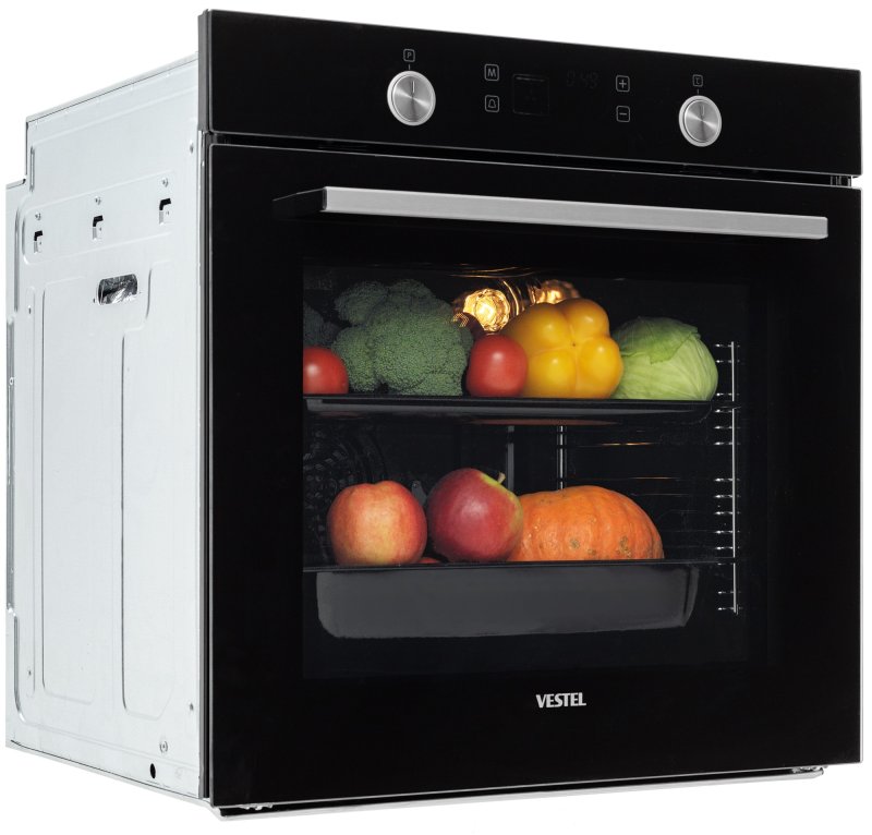 Благодаря большому внутреннему объему встроенные шкафы Vestel обеспечивают большую площадь для выпечки, поэтому обеспечивается энергоэффективность при приготовлении пищи.