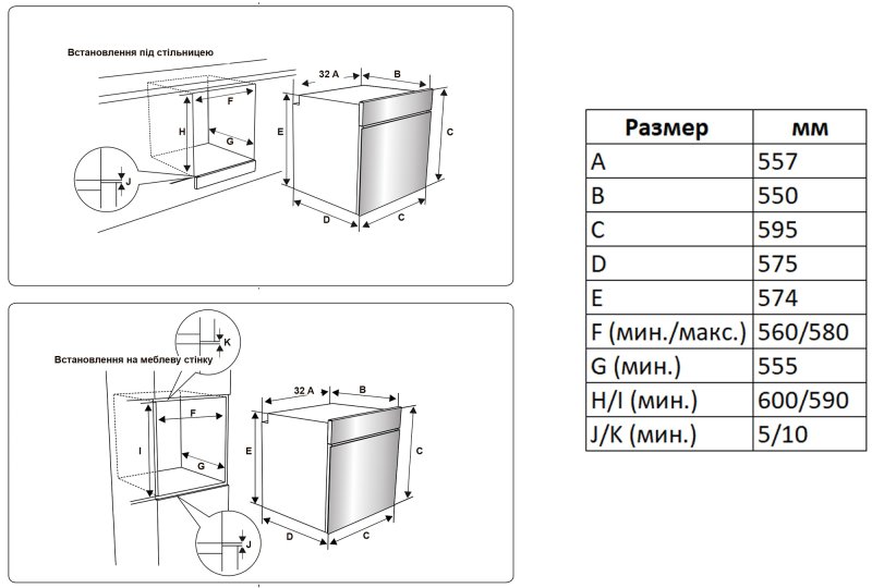 Габариты ниши для встраивания (ВxШxГ)