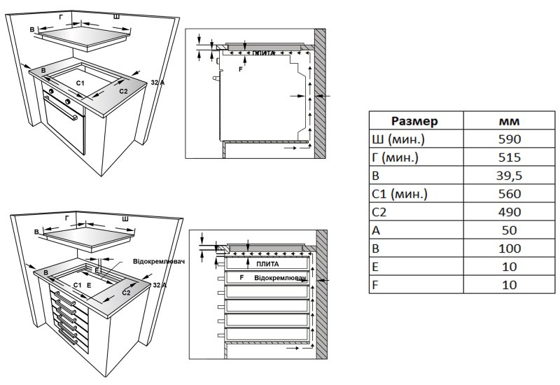 - Номинальное давление топлива (бутан G30): 28 - 30 мБар ,