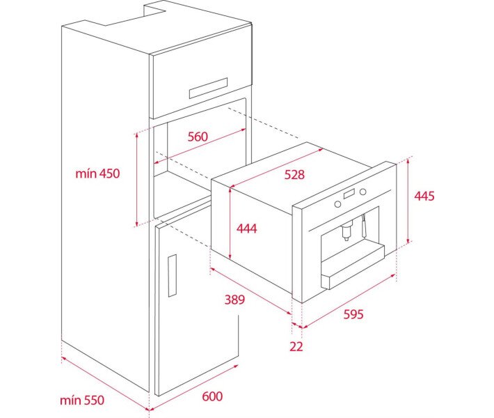 - Размеры для встраивания: 560 x 550 450 мм ,