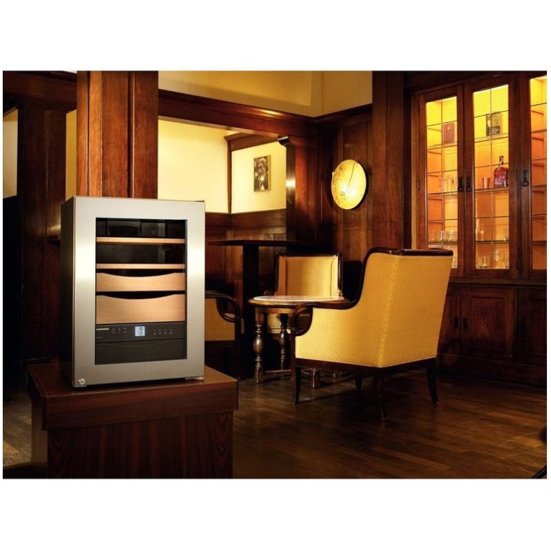 Для получения максимального удовольствия от сигар их следует после изготовления выдерживать в специальных климатических камерах при влажности от 68% до 75%. Поддержание влажности в этом диапазоне и температуры хранения от +16 °С до +20 °С необходимо для надлежащего вызревания сигар и предотвращения ухудшения их качества. Хранение сигар в условиях низкой влажности приводит к высыханию сигар и неблагоприятно сказывается на их качестве и аромате. Если влажность слишком высока, существует риск образования плесени на дорогостоящих табачных листьях. Хьюмидор обеспечивает идеальные климатические условия для хранения или созревания сигар в течение длительного времени. Высококачественная электронная система управления с сенсорной панелью в сочетании с датчиками температуры и влажности гарантирует точное поддержание температуры и влажности. Хьюмидор: внутренние полки из испанского кедра