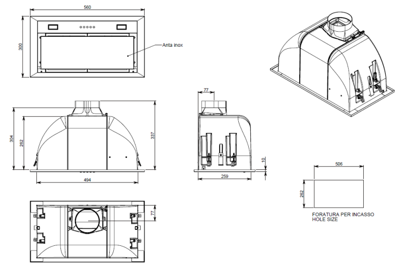 Описание Вытяжка кухонная Falmec Built-in Max 50 Inox 600