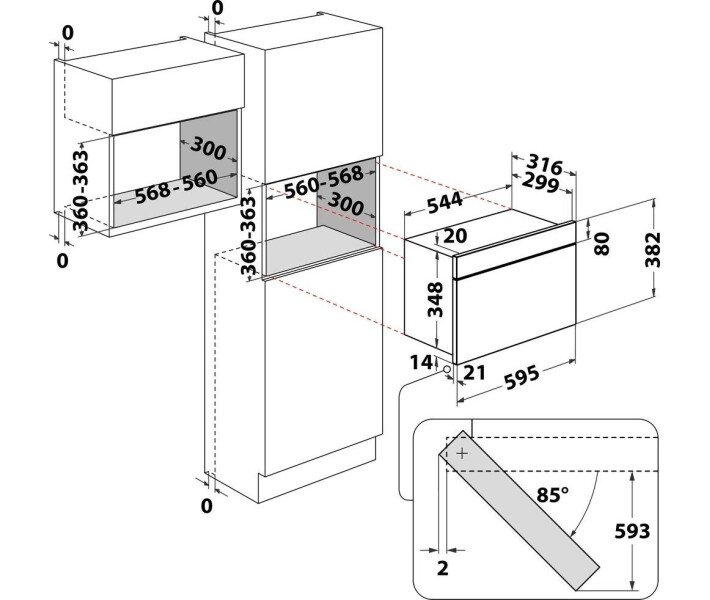 - Габариты ниши (ВxШxГ): 36 - 36.5 x 55.6 - 56.8 x 30 см ,