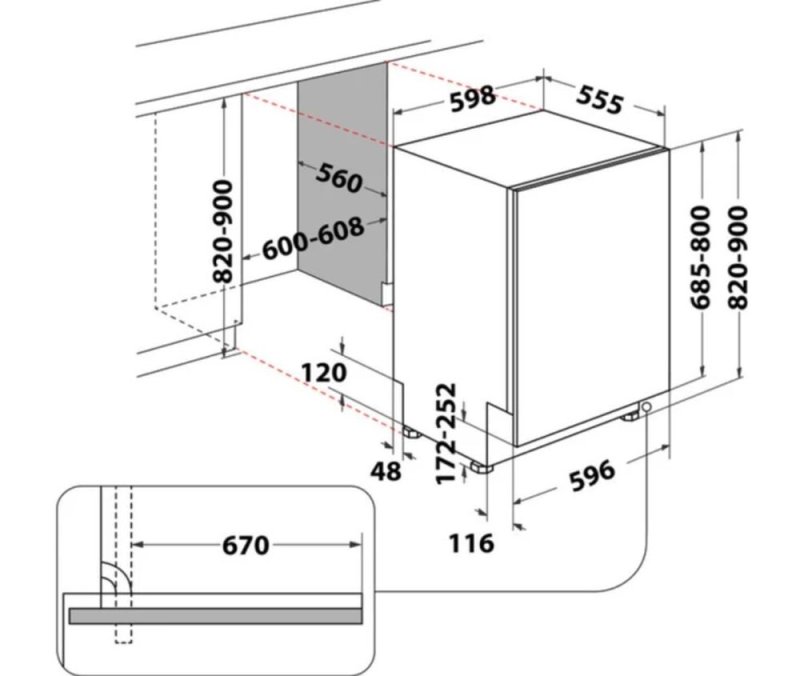 - Внутренние размеры шкафа (вxшxг): 900-820 x 600 x 570 мм ,