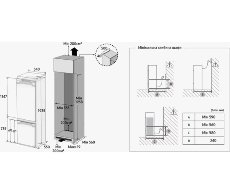 Характеристики Холодильник вбудований Samsung BRB80F30A1F0UA