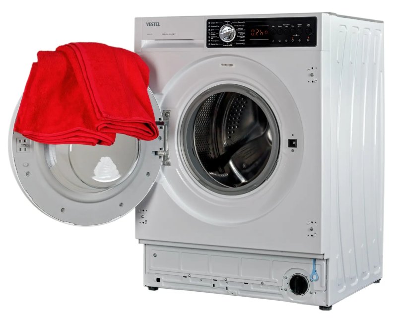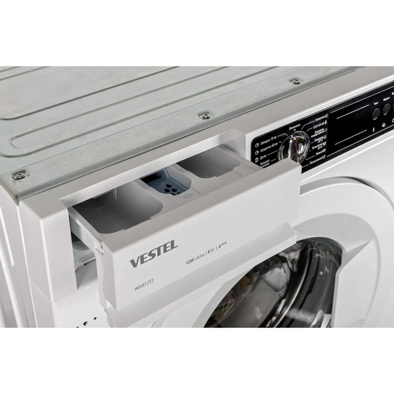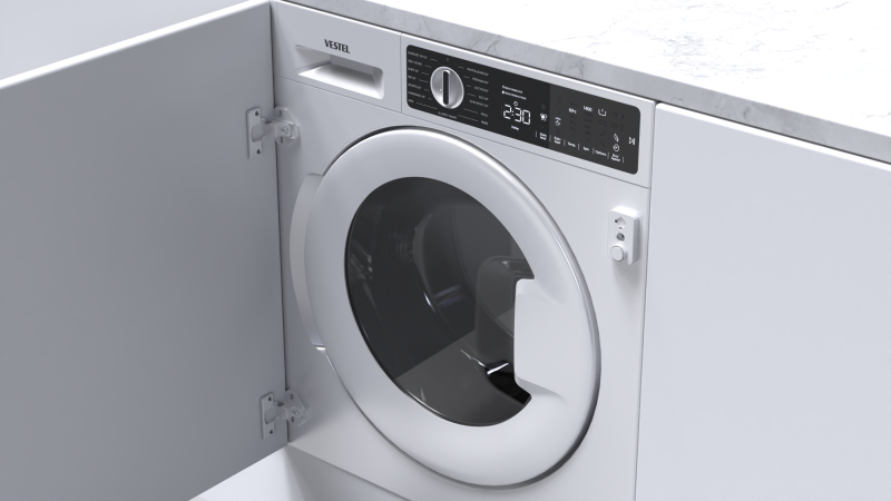 Сучасну пральну машину VESTEL 8 КГ WMBI8120T2A можна легко вбудувати у фасад кухні чи ванної кімнати.